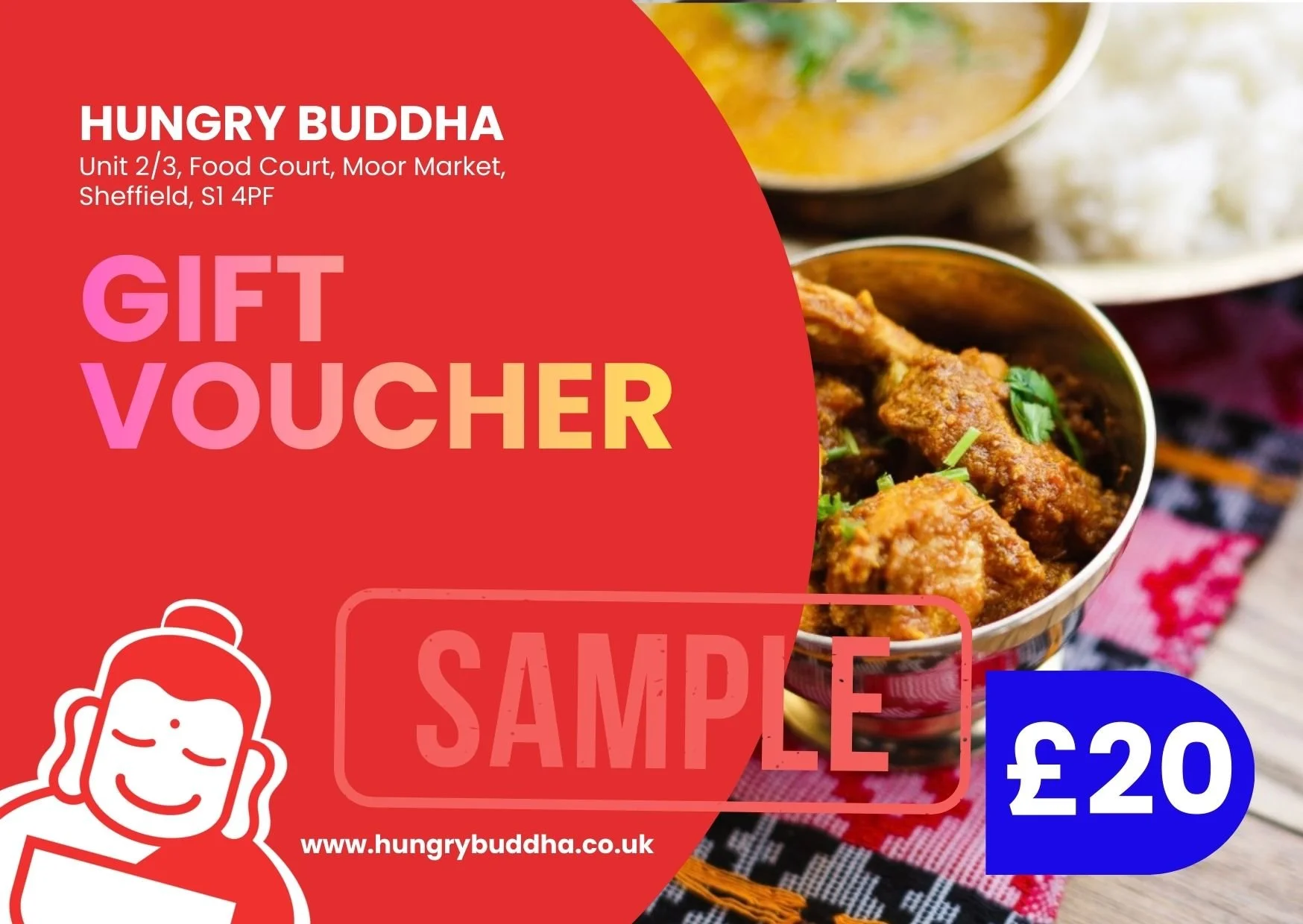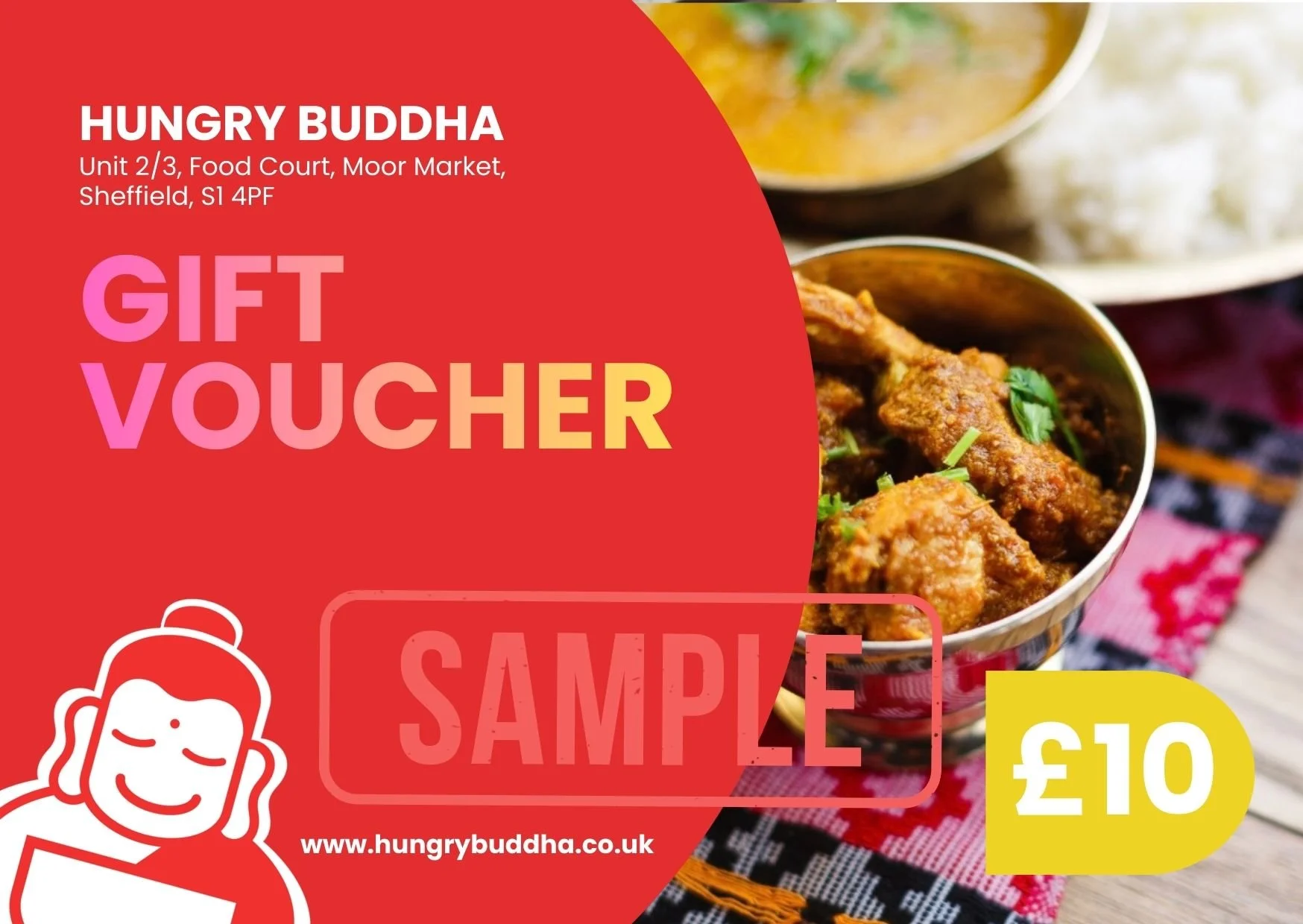 HUNGRY BUDDHA SHOP Shop Categories: Select a Category Books Tins Ceramics Gift Cards Books | Tins | Ceramics | Gift Cards | Handmade Ceramic Plates from Nepal Support Nepalese craftsmanship and treat yourself to handmade ceramic plates from Nepal.COLLECTION FROM HUNGRY BUDDHA - UNIT 2, FOOD COURT, MOOR MARKET, SHEFFIELD, S1 4PF from £4.00 The Sheffield Cookbook The Sheffield Cookbook, featuring some Hungry Buddha recipes.COLLECTION FROM HUNGRY BUDDHA - UNIT 2, FOOD COURT, MOOR MARKET, SHEFFIELD, S1 4PF £8.00 Hungry Buddha Spice Tin Know someone who loves cooking? Why not treat them to a spice tin filled with spices.The tin can be refilled as and when you need it at £2 per pot.COLLECTION FROM HUNGRY BUDDHA - UNIT 2, FOOD COURT, MOOR MARKET, SHEFFIELD, S1 4PF £15.00 Hungry Buddha Mug Handmade in Nepal.COLLECTION FROM HUNGRY BUDDHA -UNIT 2, FOOD COURT, MOOR MARKET, SHEFFIELD, S1 4PF £8.00 £20 Gift Card Know someone who loves Hungry Buddha? Why not treat them to a Hungry Buddha gift card to spend on a tasty lunch!DIGITAL DOWNLOAD £20.00 £15 Gift Card Know someone who loves Hungry Buddha? Why not treat them to a Hungry Buddha gift card to spend on a tasty lunch!DIGITAL DOWNLOAD £15.00 £10 Gift Card Know someone who loves Hungry Buddha? Why not treat them to a Hungry Buddha gift card to spend on a tasty lunch!DIGITAL DOWNLOAD £10.00